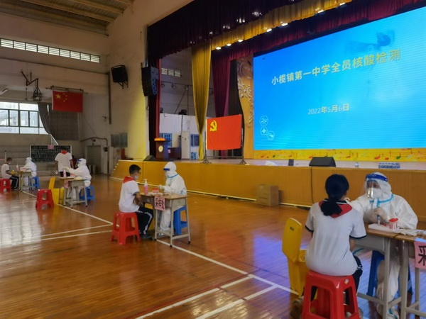 為加強(qiáng)疫情防控,保障師生健康,按照上級有關(guān)要求,2022年5月6日,小欖鎮(zhèn)第一中學(xué)在體育館開展了第四次師生全員核酸檢測工作。學(xué)校組織教師志愿者積極投入到該項(xiàng)工作中,協(xié)助醫(yī)務(wù)人員為全體師生進(jìn)行核酸采樣。