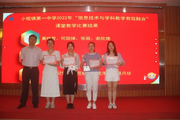 活動還舉行了頒獎儀式。呂麟校長、蔣躍副校長、林學明主任分別為在本次“信息技術(shù)與學科教學有效融合”課堂教學比賽中獲獎的教師頒獎。