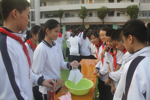 小欖鎮(zhèn)優(yōu)秀科技輔導員陳榮南老師之后給大家介紹了科技節(jié)活動的內容。本次科技節(jié)活動分互動區(qū)域、展示區(qū)域兩大區(qū)域,前者由每班主持兩個科技項目,供同學們游玩體驗;后者主要通過科學視頻、科幻畫展、科普大篷車供同學們觀摩、學習和體驗。