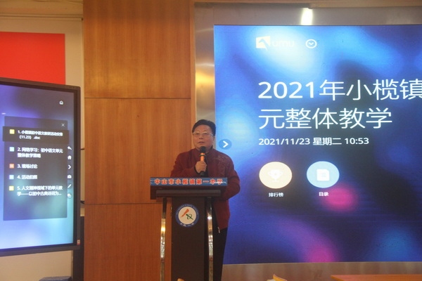 2021年11月23日,小欖鎮(zhèn)初中語文“單元整體教學(xué)”教研活動(dòng)在小欖一中舉行。這也是和東升片合并后的第一次集體教研活動(dòng)。中山市教育教學(xué)研究室語文教研員張寶華老師、小欖鎮(zhèn)語文中心教研組組長高開洪老師及小欖各校初中語文教師參加了活動(dòng),小欖一中彭耀華老師主持活動(dòng)。