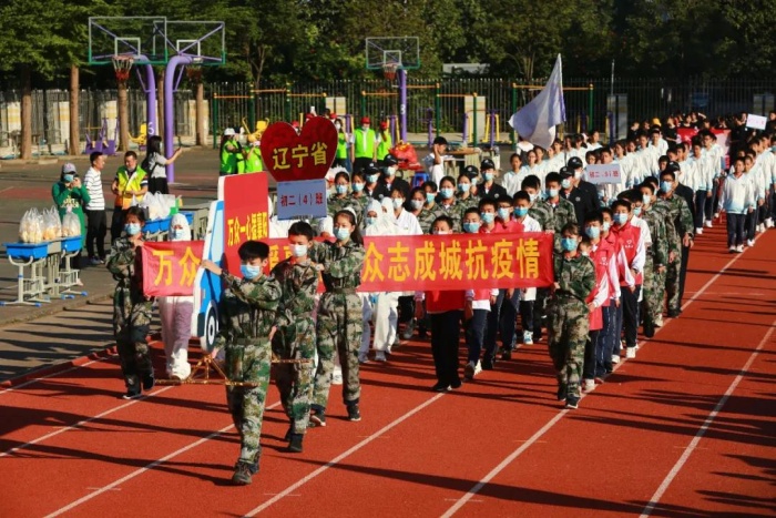 初二、初三年級身穿民族服裝,帶著親手制作地方特色道具,展示著湖北對口支援的19個省份的感人事跡、兩地情誼。每一幕都是對逆行英雄的致敬,每一幕都是對青春的贊頌。