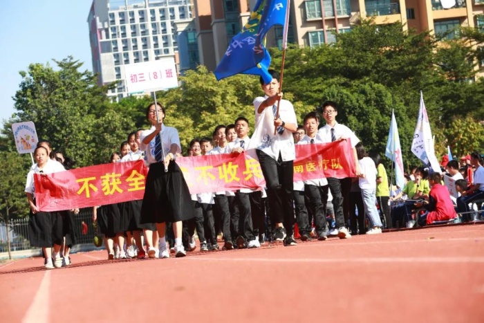 莫秀紅副校長致開幕詞。莫校長結(jié)合“博愛、創(chuàng)新、包容、和諧”的中山精神、習(xí)近平總書記對抗疫精神的講話,高度肯定了30個班級的文化展示。莫校長表示,校運會不僅是中山一中西區(qū)中學(xué)體育教學(xué)工作的一次大檢閱,更是對師生精神風(fēng)貌和綜合素質(zhì)的大檢閱。全體師生要秉持“全員參與、平安快樂”的宗旨,辦出一場精彩的體育盛會,以最實際的行動弘揚“團結(jié)、友愛、奮進”的良好品質(zhì),弘揚“更高、更快、更強”的體育精神。