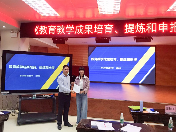 接著楊仙逸中學謝榕平老師代表項目組進行《新課標背景下高中數(shù)學思維發(fā)展型課堂教學模式的創(chuàng)新與實踐》《教育教學成果培育、提煉和申報》專題講座。謝老師講座干貨滿滿,成果模式和評價等方面對小學數(shù)學課堂建設有很大的幫助。