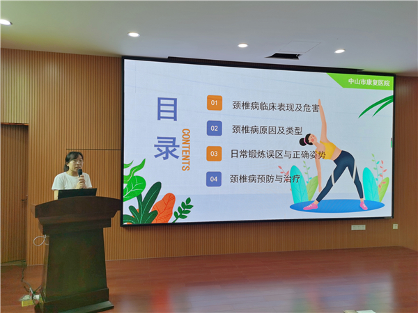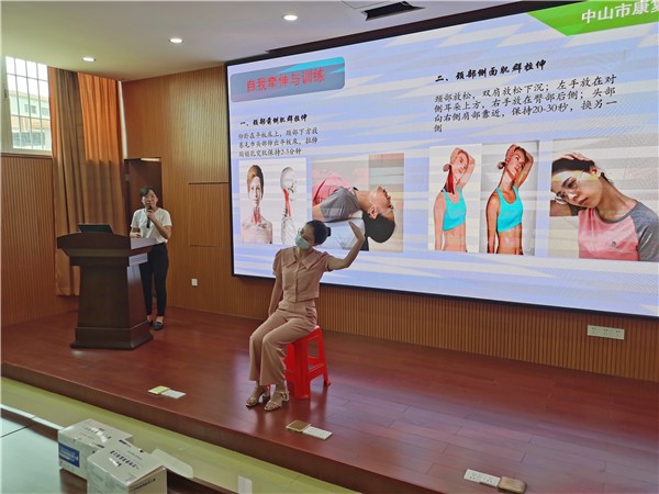 她還結(jié)合日常生活提出了一些科學(xué)預(yù)防頸椎病的措施,如端正坐姿、保持正確睡眠姿勢(shì)、常做活動(dòng)操、保證30分鐘工作間歇等,并特別提到健身功法八段錦的鍛煉,希望老師們可以提高認(rèn)識(shí),注重平時(shí)保養(yǎng),增強(qiáng)個(gè)人體質(zhì),幫助緩解疼痛預(yù)防頸椎病。