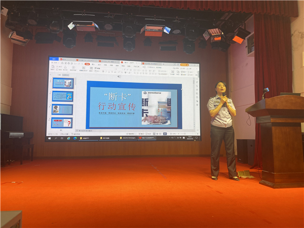 石岐公安分局侯警官也為同學們帶來了“斷卡”行動宣傳主題,讓大家知道防詐騙的重要性。他指出,當前網絡詐騙的形式多樣,有著不同程度的劇本,不同群體都存在著被騙的風險。青少年學生正處于未成年人階段,社會閱歷少,考慮問題單一,更需要提高防詐騙意識,特別是手機卡、銀行卡,切忌隨意交給陌生人使用。