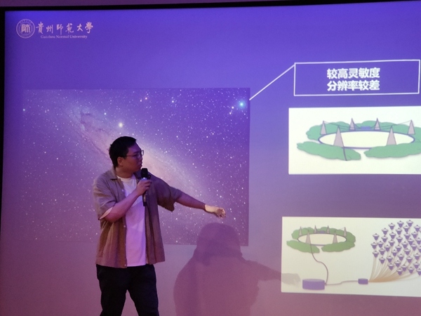 下午的學(xué)習(xí)教師們走進了貴州師范大學(xué)重點研究領(lǐng)域——信息與計算科學(xué)重點實驗室,貴州師范大學(xué)貴州省信息與計算科學(xué)重點實驗室副教授,貴州省智能計算與控制技術(shù)工程實驗室副主任陳彥。給我們講解了該校的科學(xué)研究成果,包括FAST、交通信息化、國家未來網(wǎng)絡(luò)建設(shè)、三維虛擬現(xiàn)實、生物大數(shù)據(jù)、網(wǎng)絡(luò)空間安全和遙感大數(shù)據(jù)七個方面。隨后我們跟隨科研人員來到貴師大天文科普實驗基地,領(lǐng)略了嘆為觀止的科研成果,包括宇宙運行、脈沖星運作、FAST模擬運作等。老師們一邊觀看一邊體驗,驚嘆聲與歡笑聲在實驗室蕩漾。國之重器,科技興國,在這場科技展覽中我們自豪于科技創(chuàng)新帶來的生活巨變,自豪于中國科技的自立自強。