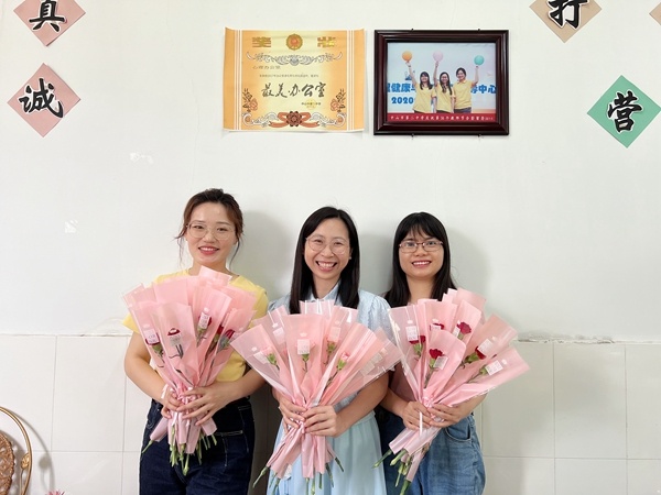 作為活動的組織策劃者,心理老師們也化身“花藝人”,親手給每一個后勤工作人員準備美美的花。