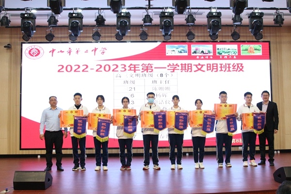 梁學(xué)斌副校長宣讀中山市第二中學(xué)表彰決定,對(duì)獲得尖峰荷韻獎(jiǎng)學(xué)金標(biāo)兵獎(jiǎng)、特等獎(jiǎng)、一等獎(jiǎng)、二等獎(jiǎng)、三等獎(jiǎng)獎(jiǎng)學(xué)金的學(xué)生,以及獲得“文明班級(jí)”“三好學(xué)生標(biāo)兵””星級(jí)學(xué)習(xí)型家長”榮譽(yù)稱號(hào)的集體和個(gè)人進(jìn)行表彰頒獎(jiǎng),號(hào)召全校同學(xué)向身邊的榜樣學(xué)習(xí),奮發(fā)圖強(qiáng),爭取優(yōu)異成績。獲獎(jiǎng)同學(xué)依批次上臺(tái)領(lǐng)獎(jiǎng)。