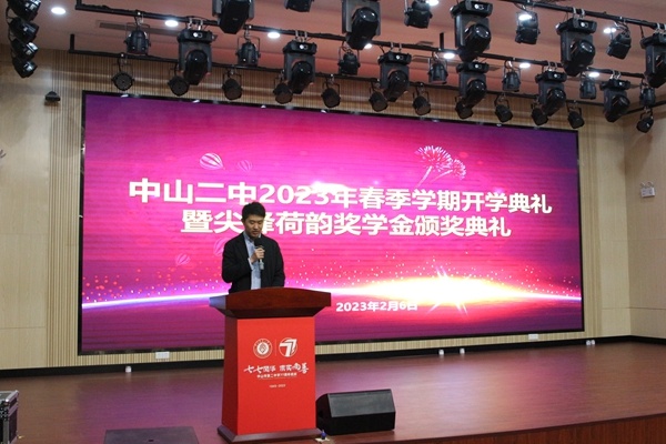 虎聲傳捷報(bào),兔影抖春暉。沐浴著和煦的春風(fēng),師生迎來了新學(xué)期。2023年2月6日下午,中山市第二中學(xué)2023年春季學(xué)期開學(xué)典禮暨獎(jiǎng)學(xué)金頒獎(jiǎng)典禮,主會(huì)場在報(bào)告廳舉行。