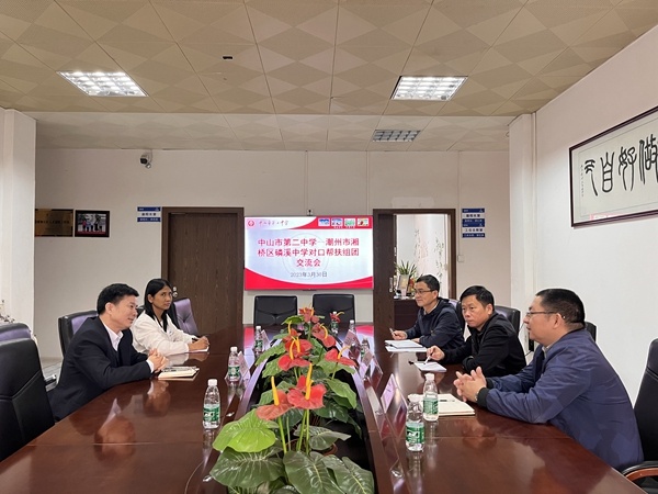 春雨潤物,春風(fēng)有信!2023年3月30日下午,潮州市湘橋區(qū)磷溪中學(xué)的李銳秋副校長、劉燕嬋主任在中山市第二中學(xué)林國勝副校長的帶領(lǐng)下,來到二中開展對口幫扶教育交流活動。梁學(xué)斌副校長、辦公室王友福主任陪同交流。