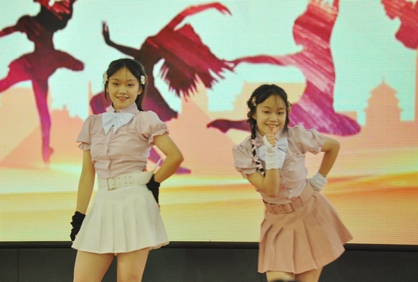 比賽結(jié)束后,主持人宣布開(kāi)始進(jìn)行票數(shù)統(tǒng)計(jì),同時(shí)雙胞胎姐妹周宇帆、周宇航同學(xué)返場(chǎng),為大家?guī)?lái)舞蹈《pop》。