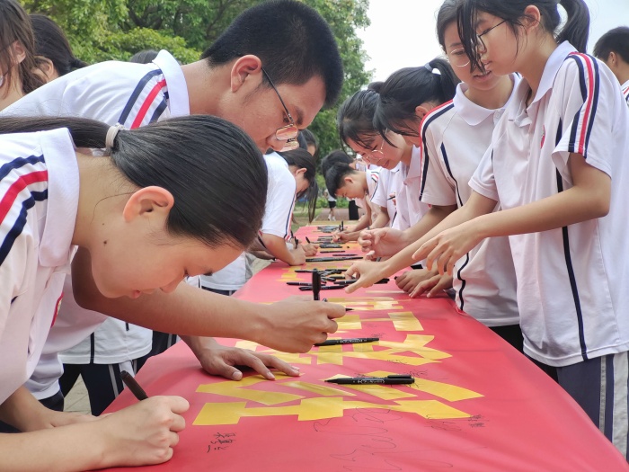 疏散演練結(jié)束后,港口中學(xué)劉素儀老師就五一假期安全問題對(duì)全體同學(xué)作了強(qiáng)調(diào)。不僅要注意常規(guī)安全問題,還要堅(jiān)決杜絕假期私自外出游泳,預(yù)防溺水事件發(fā)生;假期出行要謹(jǐn)防交通安全事故的發(fā)生。除此之外,他還呼吁大家,嚴(yán)格遵守防疫要求,切實(shí)做到非必要不離市、不出省,不前往中、高風(fēng)險(xiǎn)地區(qū)。過一個(gè)健康、平安、愉快、充實(shí)的“五一”假期。緊接著,港口中學(xué)學(xué)生代表溫婉菁帶領(lǐng)全體同學(xué)一起舉手承諾防溺水“六不準(zhǔn)”。隨后各班同學(xué)有序地在“珍愛生命,遠(yuǎn)離水域,預(yù)防溺水,從我做起?!钡臋M幅上鄭重地簽上了自己的姓名,共同承諾遠(yuǎn)離水域,攜手構(gòu)筑起預(yù)防溺水傷害的堅(jiān)固屏障。