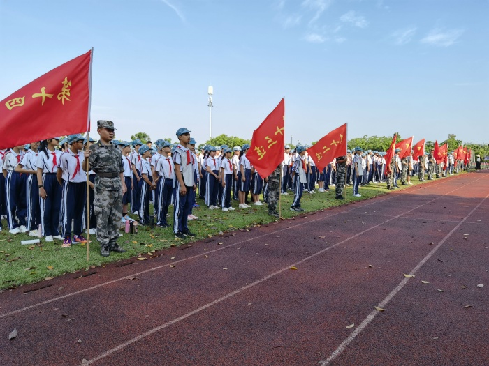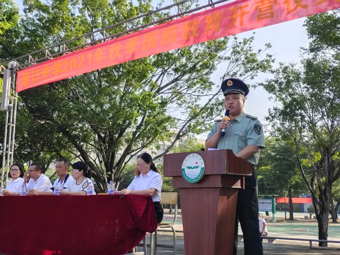 為了強(qiáng)化學(xué)生的國防意識(shí),進(jìn)一步培養(yǎng)學(xué)生的愛國情操,增強(qiáng)班集體的凝聚力和向心力,提升學(xué)生健康的身心素養(yǎng),2021年10月11日,中山市港口中學(xué)初一新生舉辦了國防教育開營儀式。教育和體育事務(wù)中心劉憲軍主任、鎮(zhèn)武裝部副部長(zhǎng)賀洪彪先生、學(xué)校廖志堅(jiān)校長(zhǎng)攜同全體行政、初一各班班主任出席了本次活動(dòng)。
