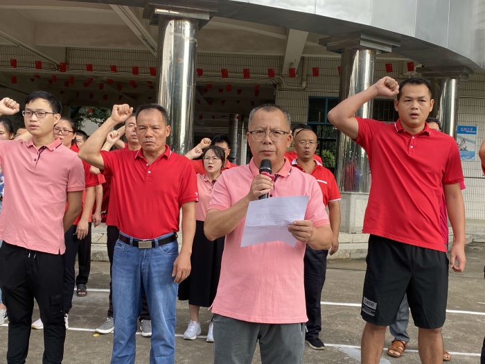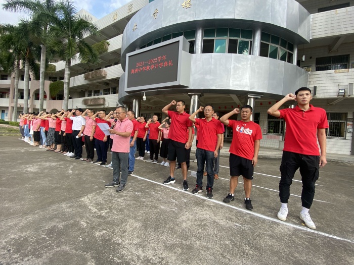接著,吳平老師帶領(lǐng)全體教師宣誓。新的學(xué)期,海洲中學(xué)全體老師將繼續(xù)秉持立德樹人、無私奉獻(xiàn)的精神品質(zhì),為人師表、關(guān)心學(xué)生,鑄造海中更美好的明天。而后,是學(xué)生代表發(fā)言,三4班李凱琳同學(xué)代表初三學(xué)子,道出新學(xué)期的奮斗目標(biāo),激勵(lì)全體海中學(xué)子排除萬難,奮勇爭先。