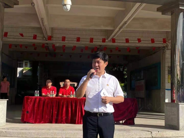 最后一個(gè)環(huán)節(jié)是校長致辭。海洲初級中學(xué)敖萬軍校長作了名為《嚴(yán)格自律,文明有禮,自強(qiáng)不息,做最好的自己》的主題講話。敖校長播放了暑假期間同學(xué)們在會展中心接種新冠疫苗的照片,照片里身著海中校服的同學(xué)們訓(xùn)練有素,紀(jì)律優(yōu)良,得到了鎮(zhèn)領(lǐng)導(dǎo)的表揚(yáng)與肯定,敖校長以此激勵(lì)大家新學(xué)期也要用嚴(yán)格自律、文明有禮的高標(biāo)準(zhǔn)要求自己。接著,敖校長播放了古鎮(zhèn)驕傲——“飛人”蘇炳添的訓(xùn)練視頻,告誡同學(xué)們成功的關(guān)鍵無他,唯有自強(qiáng)不息、勇于改變,努力做最好的自己。
