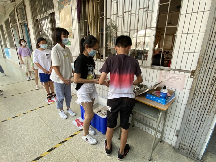 演練共分為學生進校門口測體溫演練、學生停放單車演練、上課演練、突發(fā)病例演練、課間演練、大課間演練、就餐演練和放學演練等八個場景,參與演練的全體老師和同學們積極參與其中,嚴格遵循防疫要求行為規(guī)范,為即將到來的開學做了充分的準備工作。