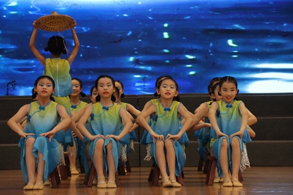 在頒獎儀式中,菊城小學舞蹈社團的隊員們給大家?guī)砹司实谋硌荨缎捍贯灐?,活潑可愛的笑容、活靈活現(xiàn)的舞姿給散學典禮增添了喜慶的光彩。