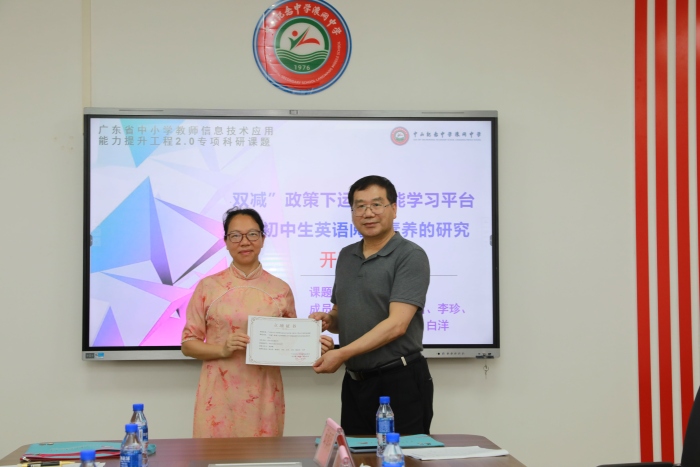 2022年6月9日下午,由賈海琳老師主持的2022年廣東省中小學教師信息技術(shù)應用能力提升工程2.0專項科研課題《“雙減”政策下運用智能學習平臺提高初中生英語閱讀素養(yǎng)的研究》開題報告在中山紀中浪網(wǎng)中學黨建室舉行,由邱慎明副校長主持,中山紀中浪網(wǎng)中學楚東升副校長、馮建英主任和全體英語老師參加會議。
