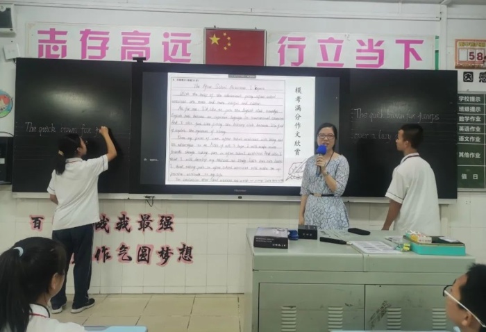 何珊玲老師對應(yīng)楚校長提到的格局問題,開展了題為“紀(jì)中學(xué)子,大國擔(dān)當(dāng)!”的小課堂。何老師提出紀(jì)中浪網(wǎng)學(xué)子應(yīng)該擁有外在儀態(tài)美和內(nèi)在精神美?!?112”工程,中山紀(jì)中浪網(wǎng)學(xué)子需踐行,練好一筆好字。葉夏富老師針對同學(xué)們在書寫規(guī)范方面存在的問題,開展了“如何規(guī)范書寫”小課堂。李珍老師開展了“How to Write English Better”的小課堂來讓學(xué)生明白英語該如何去書寫。