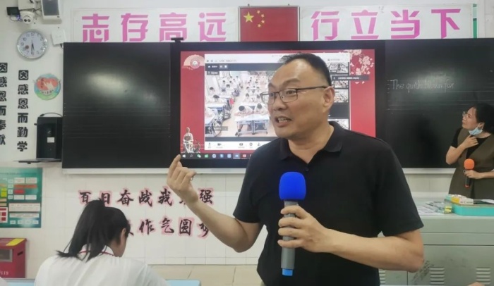 在明亮整潔的初三3班教室中,楚東升副校長激情開講,初三3班同學(xué)在教室聚精會神的聽講,各班學(xué)生和老師們在線上全神貫注的觀看直播課堂。楚校長以“我們都是紀(jì)中人——紀(jì)中浪網(wǎng)學(xué)子畫像”為題開講。大思政大育人新格局,楚校長首先講述描繪紀(jì)中人的畫像是什么樣子的,紀(jì)中人的符號就是:愛思考、善閱讀、肯鉆研、有格局。作為紀(jì)中浪網(wǎng)人需要賡續(xù)中山精神,厚實(shí)浪網(wǎng)文化,爭做紀(jì)中人。