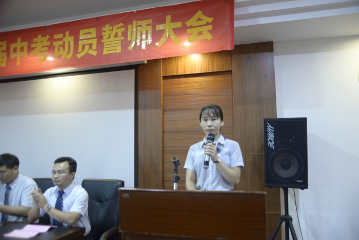 全體初三學(xué)子伴隨著激昂的旋律陸續(xù)入場(chǎng),誓師大會(huì)在莊嚴(yán)的國(guó)歌聲中拉開序幕。初三教師代表陳園老師率先發(fā)言,她諄諄教誨,對(duì)全體學(xué)生在提出了詳細(xì)的要求,要求同學(xué)們樹立必勝的信心,制定學(xué)習(xí)計(jì)劃,珍惜時(shí)間,調(diào)整心態(tài),以堅(jiān)強(qiáng)的意志迎戰(zhàn)中考。
