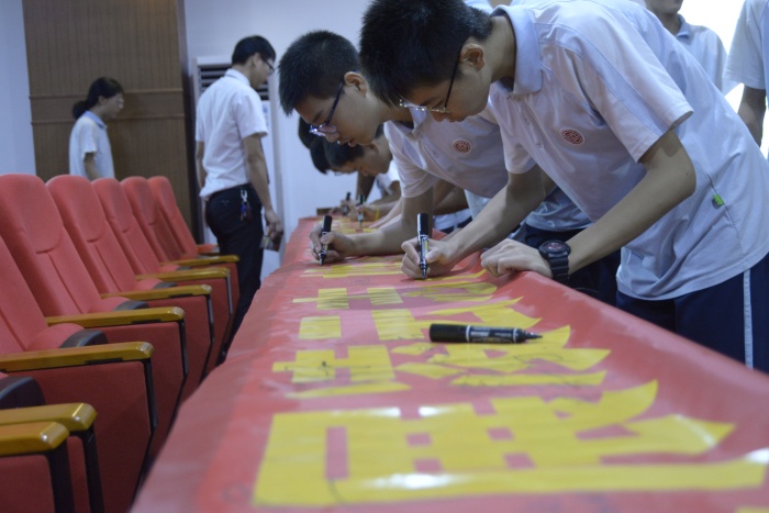 之后,初三年級(jí)組長(zhǎng)王景付老師帶領(lǐng)全體初三教師發(fā)出了錚錚誓言:定會(huì)做學(xué)生強(qiáng)有力的后盾,與學(xué)生同甘共苦,為德恒學(xué)子保駕護(hù)航。緊隨其后,全體初三學(xué)生也莊嚴(yán)宣誓:目標(biāo)明確,積極向上;勤學(xué)苦練,斗志昂揚(yáng);講究方法,保質(zhì)保量;頑強(qiáng)拼搏,不棄不放;爭(zhēng)分奪秒,適度緊張;全力以赴,創(chuàng)造輝煌!鏗鏘的誓言如春雷陣陣響徹云霄,燃起了孩子們的斗志,堅(jiān)定了他們必勝的信心。最后,全體師生在橫幅上中簽名以表決心。至此,本次誓師大會(huì)圓滿結(jié)束。