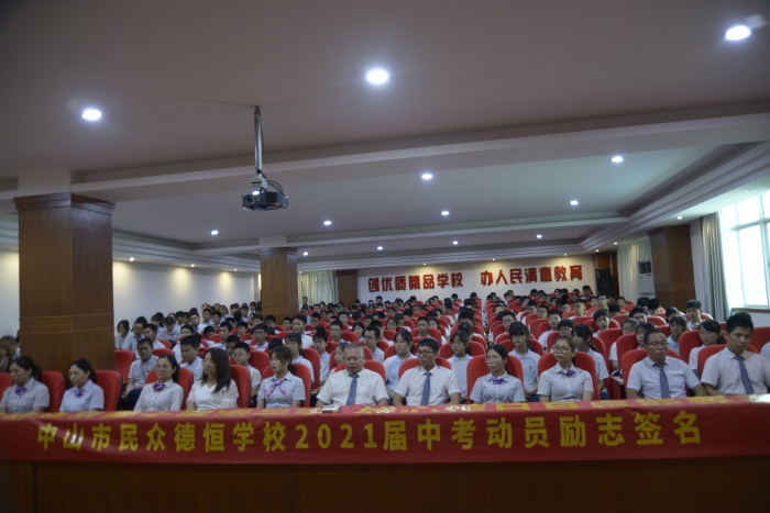 為激發(fā)學(xué)生的競(jìng)爭(zhēng)意識(shí)和拼搏精神,促使初三學(xué)生以更好的心態(tài)投入到學(xué)習(xí)中去,9月18日下午14點(diǎn),中山市民眾德恒學(xué)校在多媒體會(huì)議室隆重舉行了2021屆中考動(dòng)員誓師大會(huì)。大會(huì)由姚若彤老師主持。