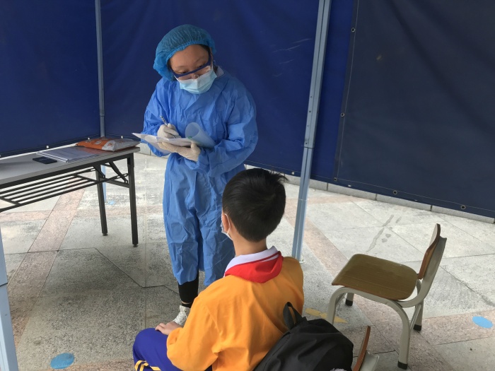 在實戰(zhàn)演練中,從學生入校門接受晨檢開始,對晨檢落實、發(fā)現(xiàn)病例、詢問病情、病例隔離、啟動應急預案、登記報告、聯(lián)防聯(lián)控、消毒通風等重點環(huán)節(jié)進行了模擬。整個演練過程緊張有序,有條不紊,情境逼真,預設合理。最后,陳敏華校長對學校的疫情防控工作進行了部署。提出對新冠肺炎疫情的防控不能有絲毫麻痹大意,進一步細化落實各項防控工作,做好校園的常態(tài)化疫情防控工作。