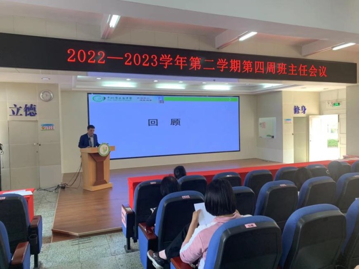 會(huì)議伊始,德育處主任何志楊跟大家回顧了班主任工作中的亮點(diǎn),肯定了班主任工作的辛勤付出。同時(shí)指出班主任的地位和任務(wù)是非常重要的,更要提高自己的素養(yǎng),做好學(xué)生的引路人,并針對(duì)班級(jí)管理中需要提升的地方給大家做了梳理,從班級(jí)管理、宿舍管理、衛(wèi)生情況、安全教育、心理健康、家校共育等多個(gè)方面強(qiáng)調(diào)了班主任工作細(xì)心、高效的重要性。最后,何主任耐心引導(dǎo),希望大家都要努力去做一根會(huì)思考的蘆葦,做一名善于思考的老師,徜徉于德育的快樂(lè)中。