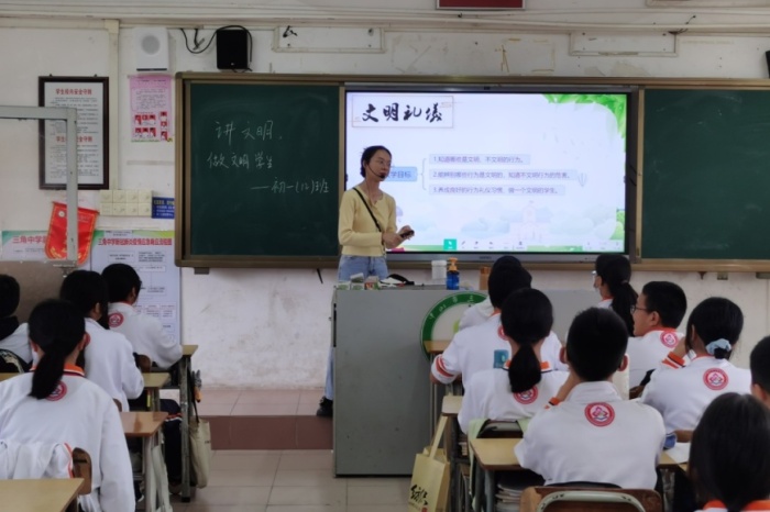 古人云:“勿以善小而不為,勿以惡小而為之 ”。文明行為,貴在實踐。為增強同學(xué)們的文明意識,引導(dǎo)同學(xué)養(yǎng)成良好的文明行為習(xí)慣,提高文明素養(yǎng),創(chuàng)建優(yōu)良校風(fēng),共建整潔、舒適、和諧、美好的學(xué)習(xí)、生活環(huán)境。三角中學(xué)于2月13日開展以“爭創(chuàng)文明校園,爭做文明學(xué)生”為主題的班會活動。
