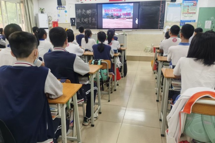 班主任還強調(diào)了班規(guī)校紀(jì)的重要性,從日常規(guī)范、行為習(xí)慣、文明禮儀等方面進一步規(guī)范學(xué)生日常行為,幫助學(xué)生養(yǎng)成良好的學(xué)習(xí)生活習(xí)慣,促進優(yōu)良校風(fēng)、學(xué)風(fēng)的形成,并呼吁同學(xué)們做文明人,行文明事,創(chuàng)設(shè)良好和諧的校園環(huán)境。
