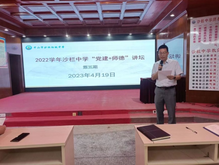 堅(jiān)守教育初心,爭當(dāng)新時(shí)代“四有”好教師。沙欄中學(xué)一直保持著爭當(dāng)優(yōu)秀的傳統(tǒng),也一直保留著修煉師德的平臺。為進(jìn)一步弘揚(yáng)師德師風(fēng)正能量,提高廣大教職工職業(yè)道德修養(yǎng),強(qiáng)化他們的育人使命和責(zé)任感,提升教職工師德師風(fēng)整體水平,4月19日下午,沙欄中學(xué)4月份的“師德講壇”如期開講。