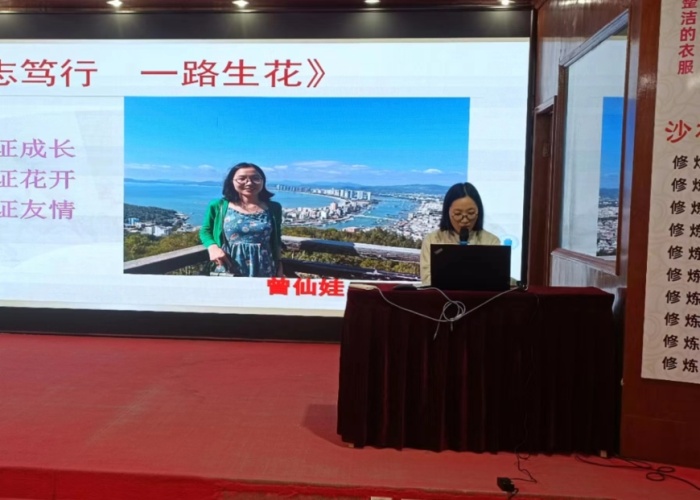 本期師德講壇的主角是英語科組的曾仙娃老師。她從自己成長經(jīng)歷講起,用生動(dòng)的教育案例、感人的育人故事為全體教師分享了自己的教育經(jīng)歷。從賽課中見證成長,她收獲知識的同時(shí)也鍛煉了思維;在陪伴中見證花開,她收獲班級管理經(jīng)驗(yàn)的同時(shí)也錘煉了能力;在團(tuán)隊(duì)中見證友情,她收獲同事友誼的同時(shí)也學(xué)會了務(wù)實(shí)。她的教育故事不長,但每一幀都十分精彩。全體教師在認(rèn)真聆聽的同時(shí)也在思考,教育之路既漫長又荊棘滿布,我們能做的就是堅(jiān)守初心,一路前行,矢志篤行,一路生花。