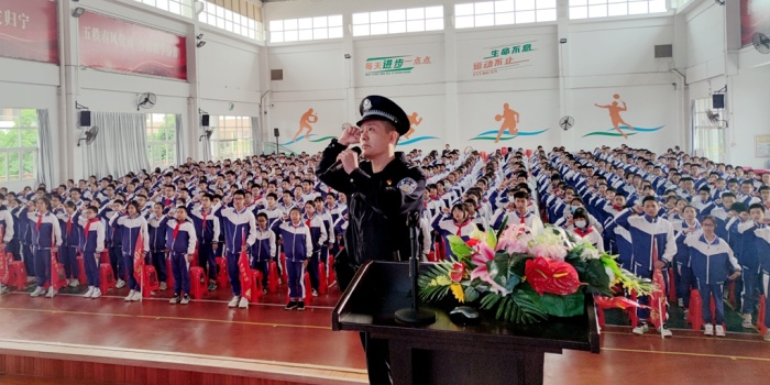 3月28日下午,為提高青少年對毒品的認(rèn)知能力和抵御能力,營造良好的禁毒氛圍,永寧中學(xué)聯(lián)合永寧社區(qū)禁毒辦在學(xué)校體育館開展“無毒青春,有你有我”為主題的禁毒教育活動。?永寧派出所警官張祥源、小欖鎮(zhèn)禁毒社工胡志剛、永寧社區(qū)禁毒專干梁熀培、羅春妹、方慧瀅、永寧中學(xué)初一年級全體學(xué)生和班主任共530多人參加了本次活動?;顒佑捎缹幹袑W(xué)德育處主任戴放良主持。