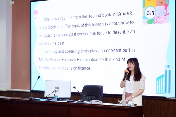 在說課過程中,參賽選手們胸有成竹,從學(xué)情分析、教材分析、教學(xué)目標、教學(xué)重難點、教學(xué)活動設(shè)計等方面進行了深入而精彩的闡述,體現(xiàn)出了對初中英語教學(xué)理念、所授教材的思考和對教學(xué)方法的研究。主題演講過程中也是亮點迭出,選手們聯(lián)系自己平時的教學(xué)工作實際,發(fā)表了對英語學(xué)科跨學(xué)科融合的觀點和看法。