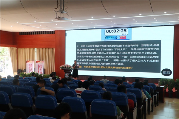 經(jīng)過(guò)現(xiàn)場(chǎng)精彩的展示,最終評(píng)選一二三等級(jí)。校名班主任主持人劉小丹、聞明老師分別針對(duì)中青年組和青年組各位選手的現(xiàn)場(chǎng)表現(xiàn)做出指導(dǎo)點(diǎn)評(píng),劉基主任就本屆班主任能力大賽的整體情況做總結(jié)發(fā)言,肯定了各位參賽選手的精神面貌,對(duì)近些年班主任專(zhuān)業(yè)能力成長(zhǎng)的成效予以肯定。