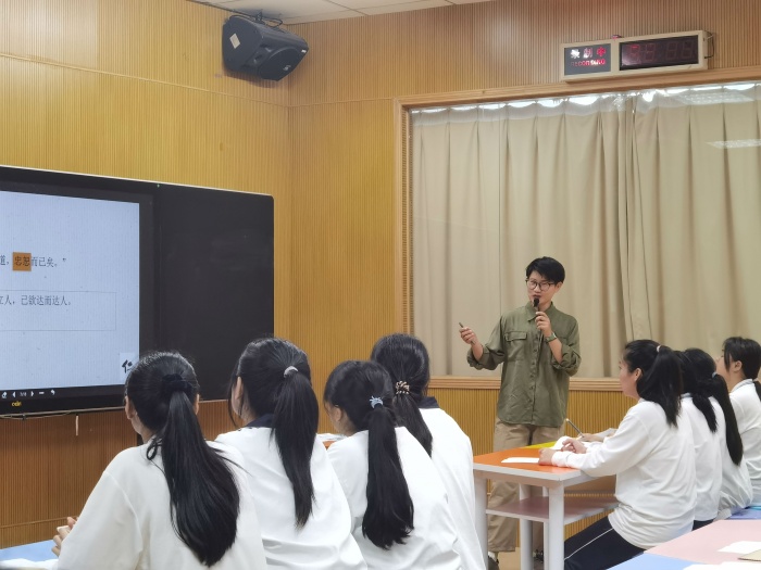 丁聲揚老師肯定了中山中專的中華優(yōu)秀傳統(tǒng)文化教育工作,稱贊杜咪老師的課堂“教學理念有高度,教學過程有溫度,教學流程有熱度”,整堂課“深入淺出、通俗易懂”,是一堂真實、有效的傳統(tǒng)文化課。林曉潔老師高度贊揚了杜咪老師的示范課,認為這一節(jié)課教學目標把握精準、教學設計巧妙、教學流程不割裂,很好地達成了“立德樹人”的目標。然后,用“三個感受”來概括對中山中專中華優(yōu)秀傳統(tǒng)文化教育工作的感受,直言從課例中感受到了授課教師的用心與智慧,感受到了團隊的整體素養(yǎng)以及熱愛,感受到了學校對中華優(yōu)秀傳統(tǒng)文化教育的重視。