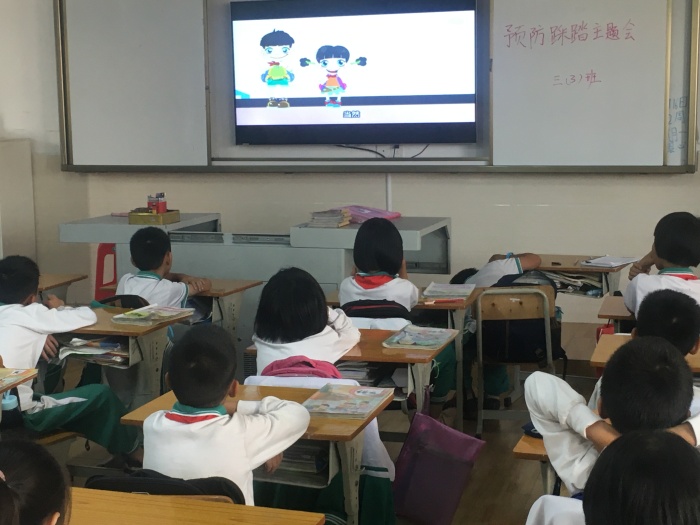 班會課上,各班學生在教室里觀看了安全教育預防踩踏篇視頻,各班班主任從踩踏事故的危害、原因及如何預防踩踏事故等方面向?qū)W生進行了詳細的講解,要求學生們在認真傾聽,用心領(lǐng)會的基礎(chǔ)上,時刻牢記“安全”二字,并做到上下樓梯有秩序;不在教室、樓梯口、操場追逐打鬧;上體育課時排隊莫擁擠;上學、放學進出校園靠右行守秩序;遇到摔倒等突發(fā)事件時刻保持冷靜的頭腦,切勿慌張?zhí)痈Z。