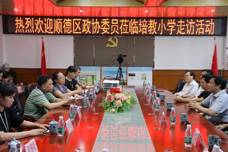 7月12日上午,順德區(qū)政協(xié)主席周文、副主席黃燕霞、李梓文、區(qū)政協(xié)專職常委和政協(xié)辦領(lǐng)導(dǎo)等12人組成的政協(xié)考察組一行,在倫教街道黨工委副書記王星海、黨工委委員黃炫丹等領(lǐng)導(dǎo)的陪同下來(lái)到培教小學(xué)參觀考察。培教小學(xué)歐陽(yáng)艷冰校長(zhǎng)帶領(lǐng)行政班子熱情接待。
