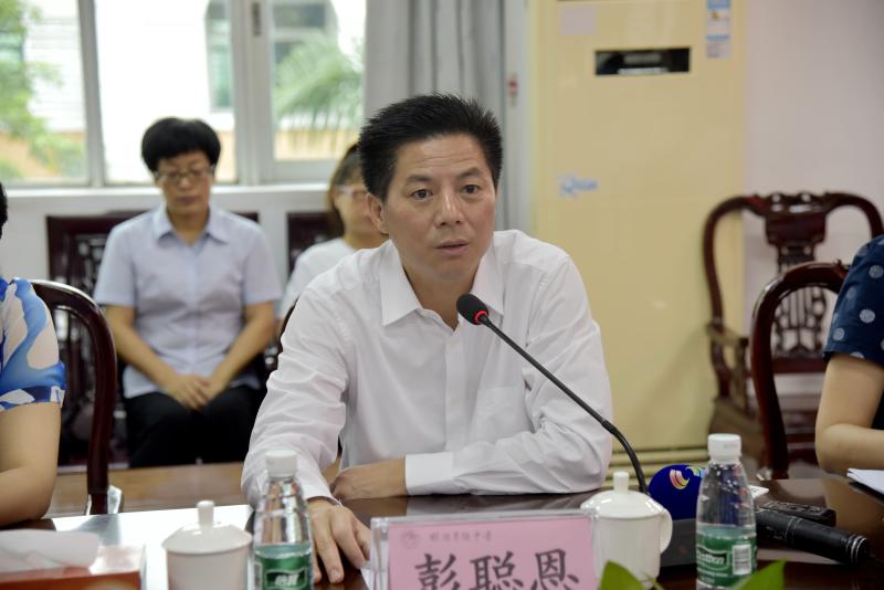 在座談中,彭區(qū)長一行聽取了吳劍平校長代表華僑中學(xué)所作的辦學(xué)情況匯報。吳校長談道:近年來,順德華僑中學(xué)在區(qū)委區(qū)政府、區(qū)教育局的正確領(lǐng)導(dǎo)下,通過全校師生的團結(jié)拼搏,辦學(xué)效益大幅提升,2019年高考,再創(chuàng)新高,取得歷史性突破。當前師生精神風(fēng)貌良好,意氣風(fēng)發(fā),斗志昂揚。未來幾年,華僑中學(xué)將秉承“鄉(xiāng)梓情,中國心,世界眼”的辦學(xué)理念,強化黨建引領(lǐng),著力在全面提升教育教學(xué)成績的基礎(chǔ)上辦好華僑教育集團,辦好港澳臺生班,積極彰顯僑校特色,進一步弘揚華僑文化,融入粵港澳大灣區(qū),以優(yōu)異的辦學(xué)成績回報區(qū)委區(qū)政府及社會各界的厚愛。
