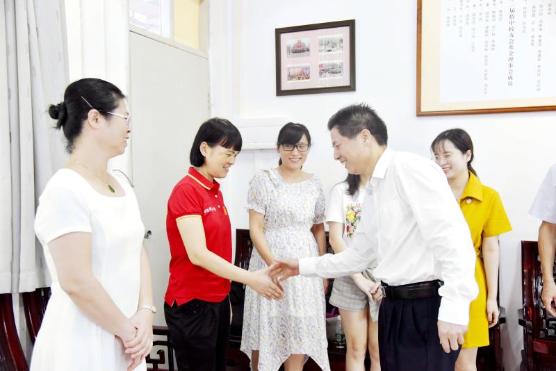 在學(xué)校會議室,彭聰恩區(qū)長一行與華僑中學(xué)高三年級教師代表進行了親切的座談和交流。彭區(qū)長與參會教師代表一一握手,并熱情祝賀他們在2019年高考中取得優(yōu)異成績。