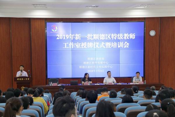 7月3日,2019年新一批順德區(qū)特級教師工作室授牌儀式暨培訓(xùn)會在順德區(qū)第一中學(xué)階梯室隆重舉行。廣東省中小學(xué)教師培訓(xùn)專家工作室主持人、肇慶學(xué)院教師教育學(xué)院院長、教授肖起清,區(qū)教育局組織人事科副科長曾麗輝,區(qū)教育發(fā)展中心專職副書記、區(qū)教師繼續(xù)教育領(lǐng)導(dǎo)小組辦公室主任何儀昌,區(qū)教育發(fā)展中心教師發(fā)展研究室主任唐信焱,以及我區(qū)特級教師工作室主持人及其工作室成員、學(xué)員近260人參加了本次會議。會議由唐信焱主任主持。