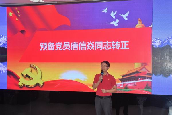 黨員大會分三項議程。第一項議程是預(yù)備黨員唐信焱同志的轉(zhuǎn)正討論及表決。唐信焱同志作了近一年來的思想、學(xué)習(xí)、生活、工作匯報,隆重地向黨總支提出轉(zhuǎn)正申請。其入黨介紹人及其他黨員同志分別對其表現(xiàn)作了表態(tài)發(fā)言。全體黨員舉手表決,全票通過,同意唐信焱同志按時轉(zhuǎn)正,正式成為中國共產(chǎn)黨黨員。唐信焱同志表示以后要一如既往,不忘初心,牢記使命!