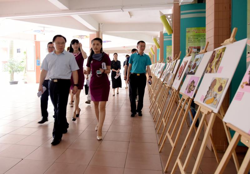 王副廳長等專家領(lǐng)導(dǎo)參觀、考察了我校的校園文化建設(shè)、集團辦學(xué)特色介紹等情況。吳副校長等行政一邊指引來賓參觀,一邊向大家介紹學(xué)校的校園文化特色,并闡述了學(xué)校的綠色教育理念和集團化辦學(xué)的成效。吳副校長介紹說,在順德區(qū)全面推進教育綜合改革大背景下,在大良街道教育改革的正確指引下,作為百年名校的西山小學(xué),于2016年11月成立了西山教育集團。迄今,西山教育集團有多種辦學(xué)模式,有同一法人的西山小學(xué)兩校區(qū),有兩所不同法人的成員校,還有一所跨鎮(zhèn)街品牌輸出的學(xué)校,共五所學(xué)校組成。集團核心校――西山小學(xué),在集團教育發(fā)展中,以其自身優(yōu)質(zhì)教育品牌更好地在區(qū)域內(nèi)發(fā)揮輻射示范作用,其優(yōu)質(zhì)師資資源和專業(yè)功能場室進行集團共享,各成員校都得到了極大的發(fā)展,教育教學(xué)成績顯著提高,師生素養(yǎng)全面提升,在順德區(qū)辦學(xué)績效評估中都評為了A級,也均被評為“順德區(qū)先進學(xué)?!保ν苿恿隧樀聟^(qū)均衡優(yōu)質(zhì)教育的教育教學(xué)質(zhì)量邁向新臺階。