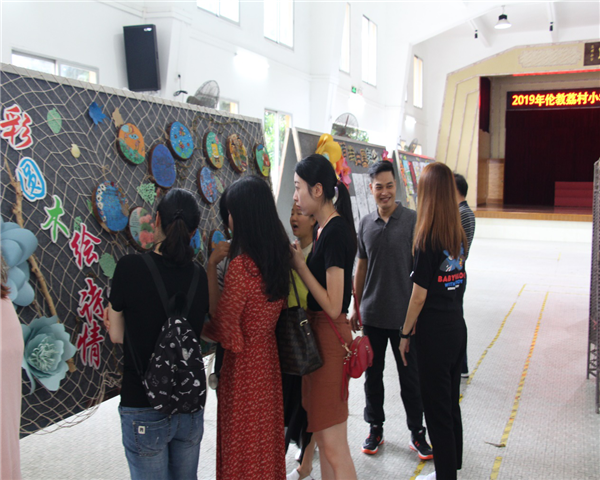 活動在倫教街道小學美術中心教研組組長鄺寶均老師主持下,首先參觀了“荔村小學美術特色作業(yè)展示”,到會的老師們在學生的引領和講解下在禮堂進行觀展。此次展出的美術特色作業(yè)內容豐富多彩,形式多種多樣。有裝飾味道強的重彩畫,有別具匠心的拼貼畫,有活靈活現(xiàn)的手工紙花,有書寫端正的手抄報,還有創(chuàng)意無限的手工立體作品和橡皮泥作品等等,內容豐富的作品彰顯了老師們設計的豐富與巧妙,更凸顯了學生們的認真努力和奇思妙想。在展覽上,荔村小學的學生們清晰大膽地介紹自己的作品和回答老師們的問題,同時認真地傾聽老師們的建議。老師們一邊認真地觀看,一邊時不時拿出手機拍照記錄,作為自己今后輔導的參考。