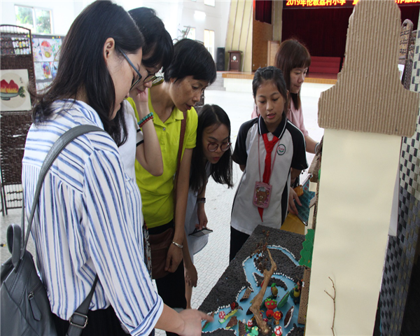 活動(dòng)在倫教街道小學(xué)美術(shù)中心教研組組長(zhǎng)鄺寶均老師主持下,首先參觀(guān)了“荔村小學(xué)美術(shù)特色作業(yè)展示”,到會(huì)的老師們?cè)趯W(xué)生的引領(lǐng)和講解下在禮堂進(jìn)行觀(guān)展。此次展出的美術(shù)特色作業(yè)內(nèi)容豐富多彩,形式多種多樣。有裝飾味道強(qiáng)的重彩畫(huà),有別具匠心的拼貼畫(huà),有活靈活現(xiàn)的手工紙花,有書(shū)寫(xiě)端正的手抄報(bào),還有創(chuàng)意無(wú)限的手工立體作品和橡皮泥作品等等,內(nèi)容豐富的作品彰顯了老師們?cè)O(shè)計(jì)的豐富與巧妙,更凸顯了學(xué)生們的認(rèn)真努力和奇思妙想。在展覽上,荔村小學(xué)的學(xué)生們清晰大膽地介紹自己的作品和回答老師們的問(wèn)題,同時(shí)認(rèn)真地傾聽(tīng)老師們的建議。老師們一邊認(rèn)真地觀(guān)看,一邊時(shí)不時(shí)拿出手機(jī)拍照記錄,作為自己今后輔導(dǎo)的參考。
