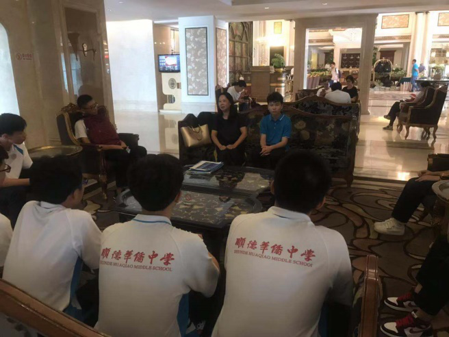 張映紅副校長趕到隊(duì)員就住酒店,給隊(duì)員加油打氣,提出:“務(wù)實(shí)、扎實(shí)、真實(shí)的交流,虛心、真心、熱心的展現(xiàn)”的指導(dǎo)思想,希望同學(xué)們能夠盡力展現(xiàn)新時(shí)代僑中人的風(fēng)采。