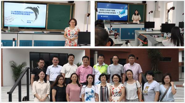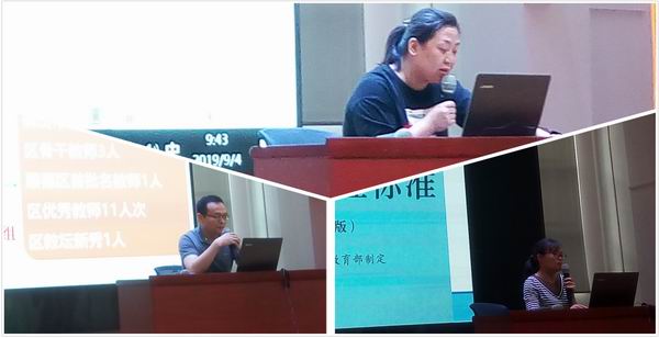 傅紅霞、崔利敏老師做報(bào)告及初中教研組長(zhǎng)合影