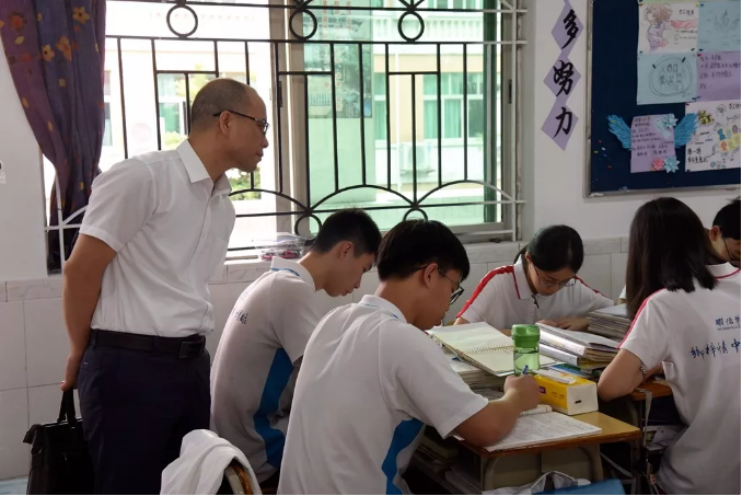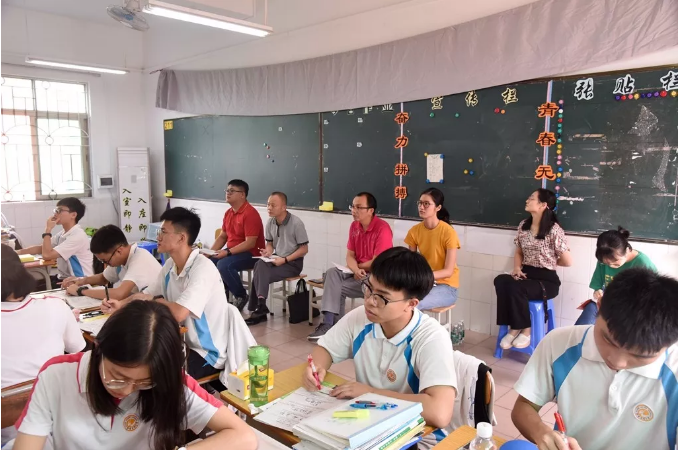 接著余逸主任充分肯定了僑中近幾年高考等方面取得的較大進步,稱贊以吳劍平校長為首的學校領導班子堅持“四個”備考,勇于創(chuàng)新,大膽啟用新人,狠抓落實,取得了很不錯的成績。同時希望華僑中學要進一步加強課堂革命,把常規(guī)檢查量表化、績效化;并根據(jù)新高考要求,積極落實新課標和核心素養(yǎng),使備考更具針對性,為順德教育高質量發(fā)展作出更大的貢獻。