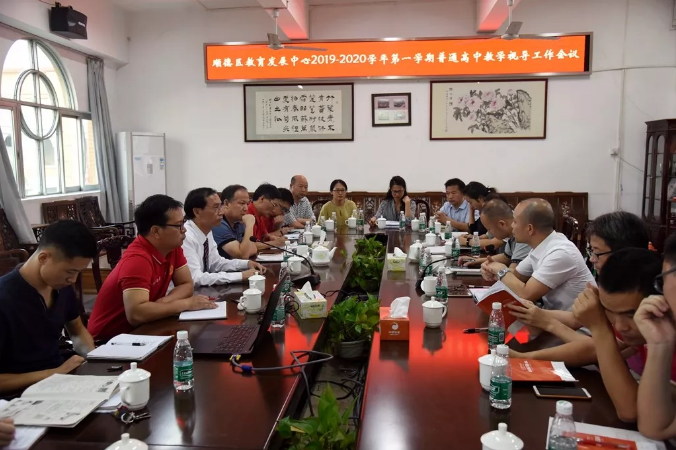 2019年10月24日下午,順德區(qū)教育發(fā)展中心教研室主任、歷史學科教研員余逸帶領化學學科教研員潘紅老師、地理學科教研員吳俊和老師、數(shù)學學科教研員王常斌老師、生物學科教研員唐創(chuàng)強老師、政治學科教研員薛國雄老師、英語學科教研員許莎莎老師、語文學科教研員謝植宣老師一行8人,對順德華僑中學教學和高三備考工作進行了全方位的視導檢查。順德華僑中學吳劍平校長、黨總支羅來綱副書記、教學科研處潘錦江主任及學校相關學科科長和備課組長等全程陪同。